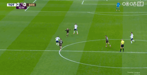 比赛第43分钟,哈维-西蒙斯在中场断球后带球长驱直入,最后低射远角破门,根据统计,这是他加盟热刺之后打进的第一个进球。
